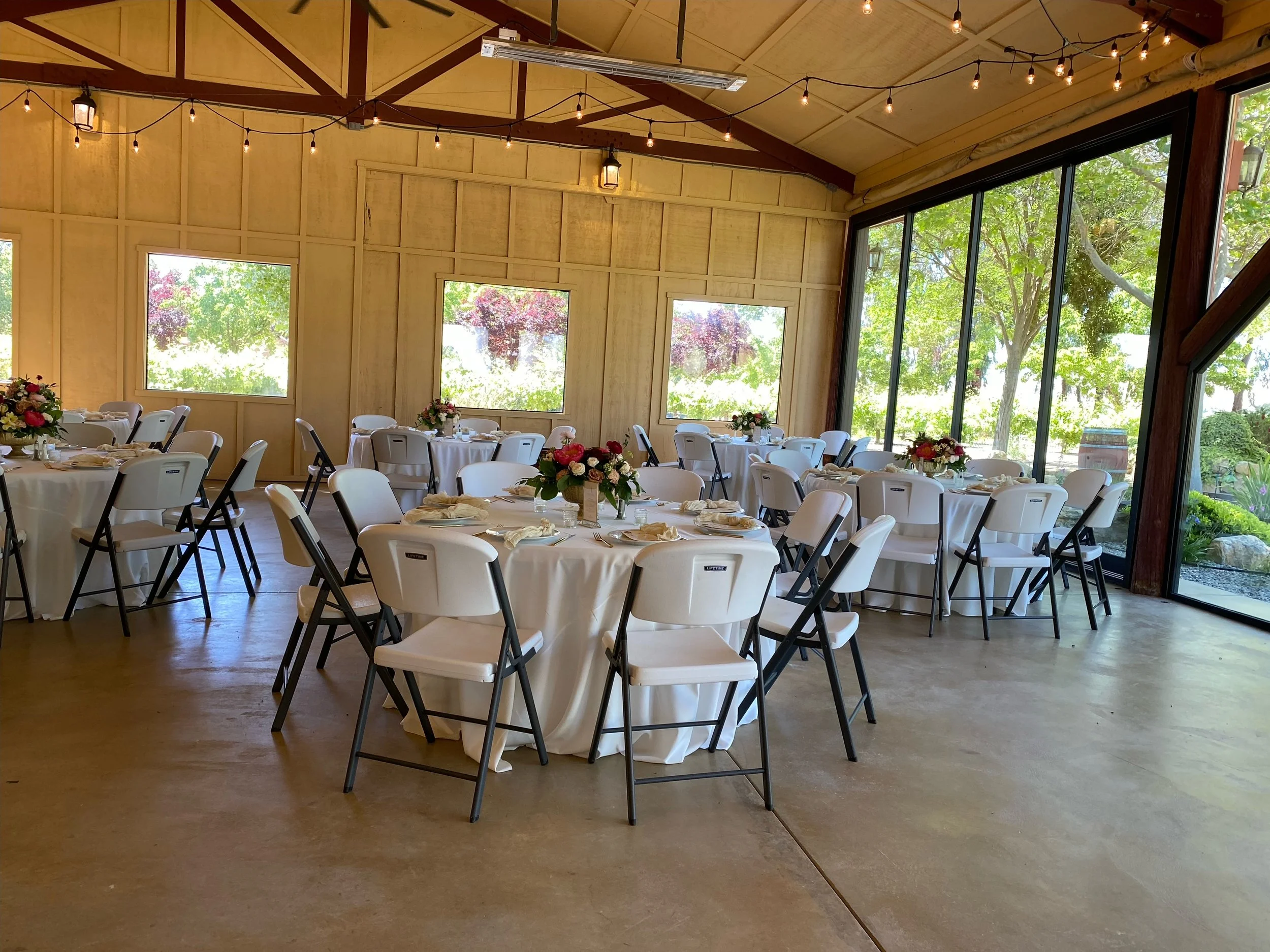 Tables, chairs and festive indoor and outdoor lighting for up to 300 guests are also available. For smaller events, private tastings or a dinner, we offer a separate, intimate Barrel Room.